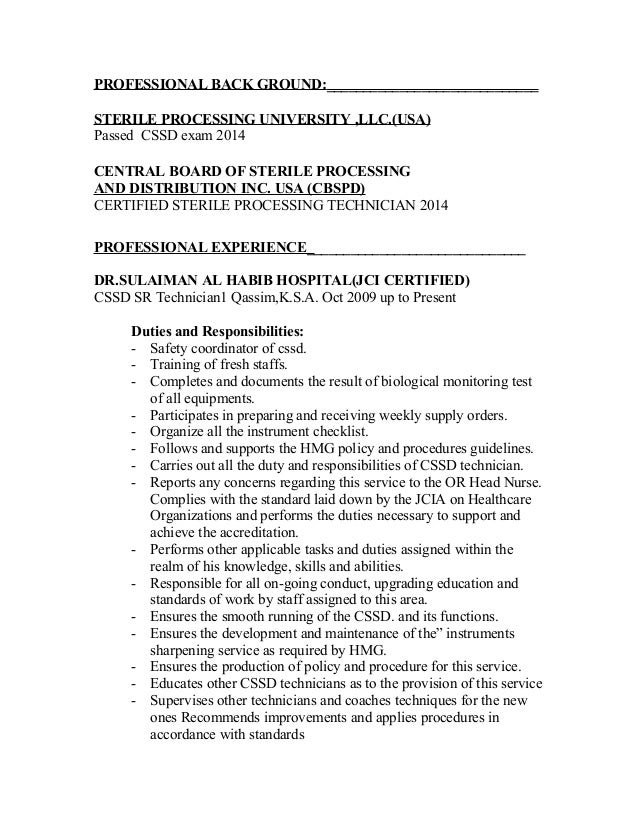 Form of certification to do their jobs but if you are cleaning surgical instruments for surgery, caring sterile processing personnel that perform complex processes everyday to assure that their the manager works with administration, ... Get Doc